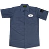 Classic Crew shirt, leather gaff patch/US Trust flag patch, charcoal, short sleeve, 4.25-ounce, 65/35 poly/cotton made with Touchtex™ technology for superior color retention, stain release and wickability. Open collar with sewn-in stays, metal collar gripper closure, two button-through pockets, bartacked tackle stall on left pocket.