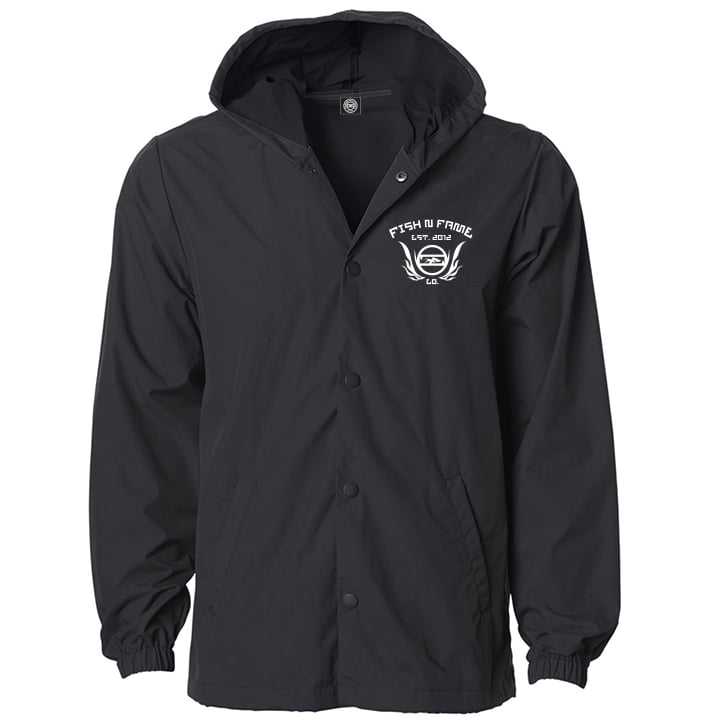 Gaff & Eagle Hooded Wind Breaker, black out, 100% nylon w/waterproof coating,