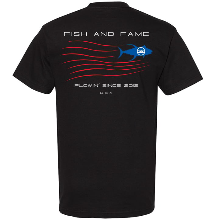 Tuna Flow Tee, black, 100% pre-shrunk cotton, 6.1oz.